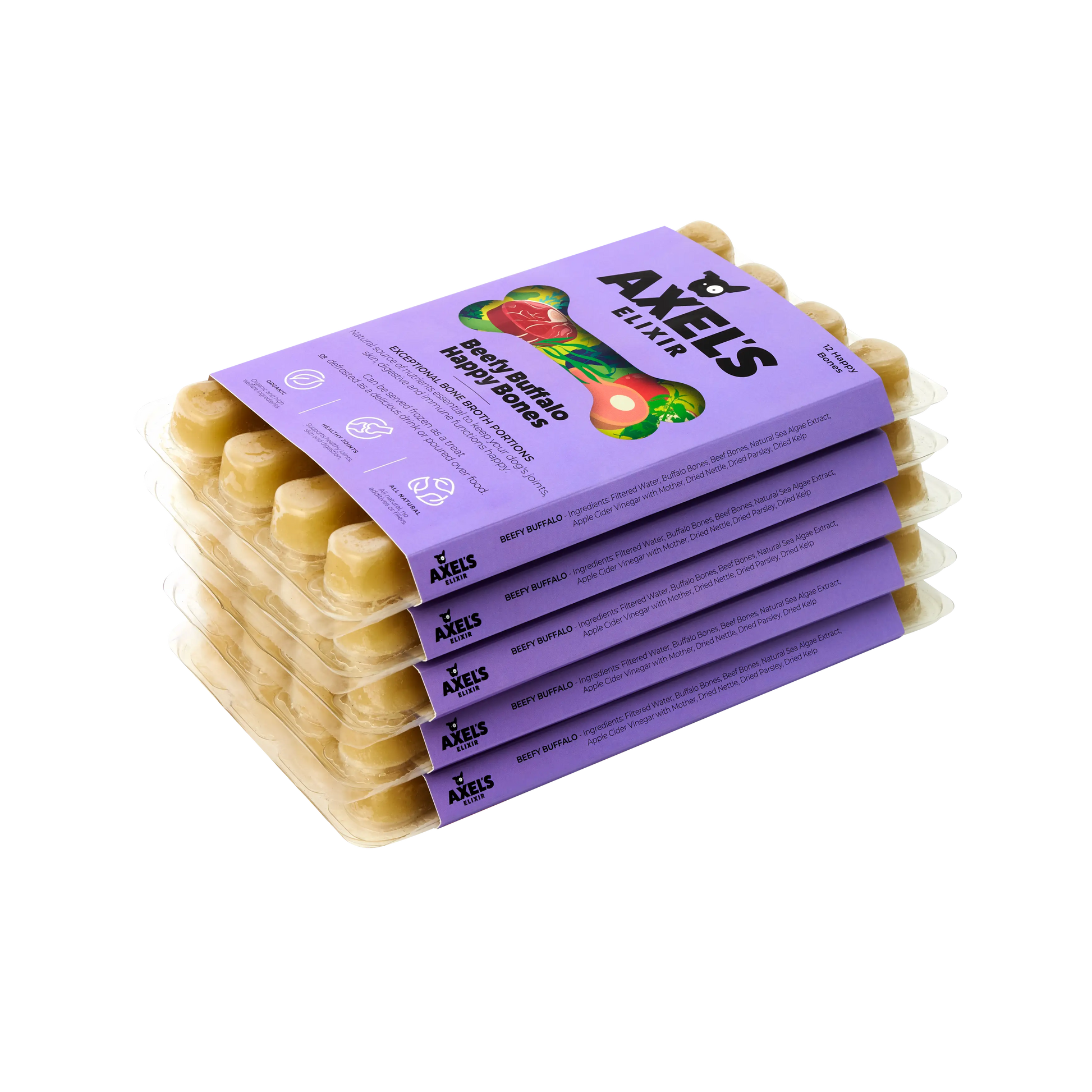 Happy Bones are packed with nutrients and compounds to support healthy joints, digestion and immune health, making them the ideal bone broth supplement for dogs.