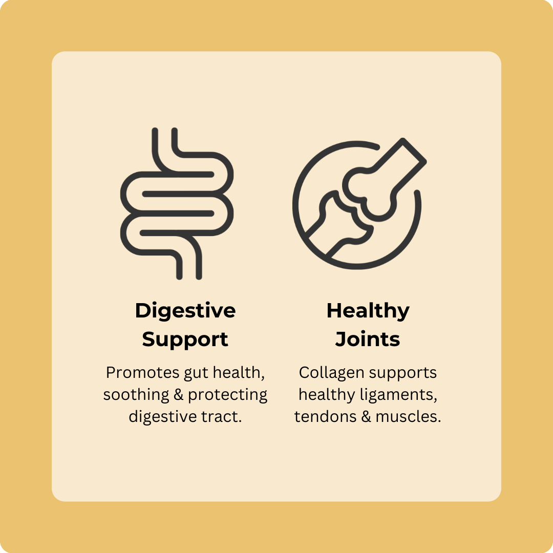 Happy Bones are packed with nutrients and compounds to support healthy joints, digestion and immune health, making them the ideal bone broth supplement for dogs.